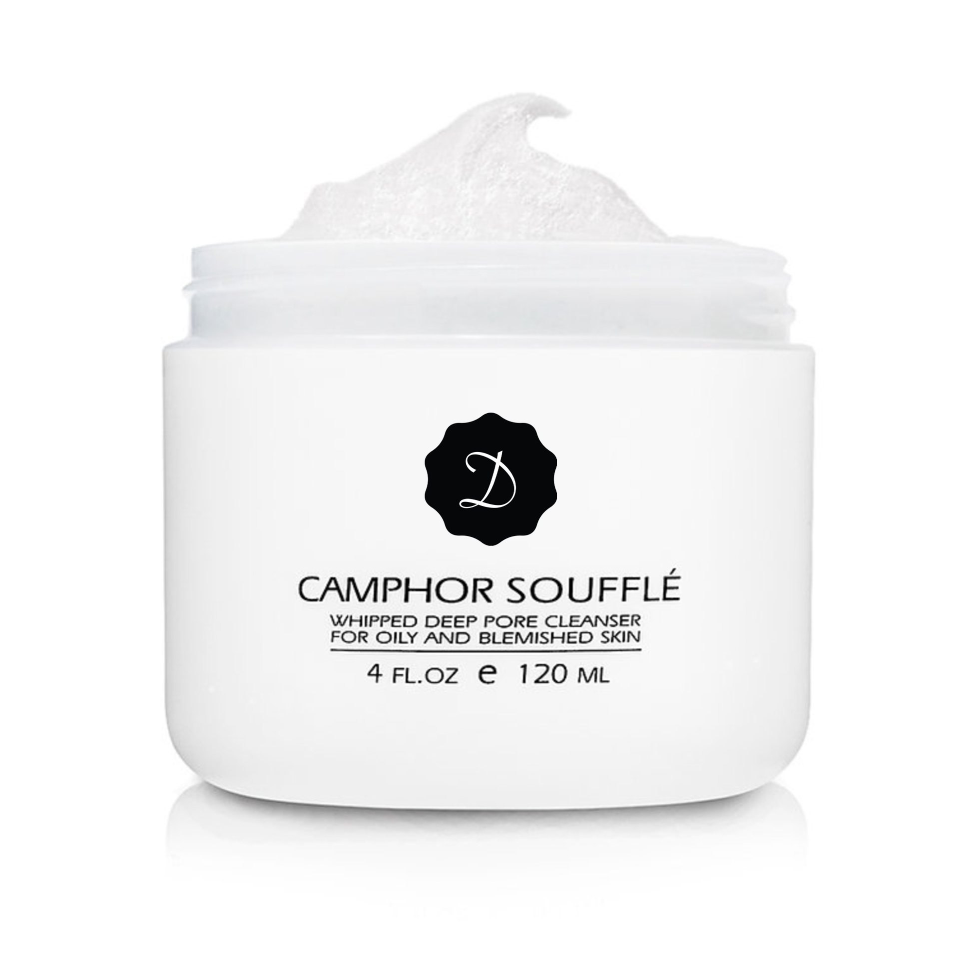 Camphor Soufflé is a powerful, pH-balanced, facial cleanser recommended for normal to oily and problem skin. It causes decongestive and anti-irritation activity and has a smooth, whipped, soufflé-like consistency. It removes surface dead cell build-up, impurities, and pore blockages, and it promotes anti-bacterial activity and a clear, smooth complexion. Camphor Souffle can also be used as a luxurious, facial shaving cream. Camphor, Clove Oil, and five herbal extracts help cleanse and rejuvenate oily and blemished skin.
